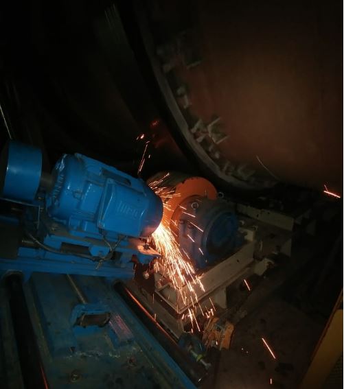 Tyres grinding. Dryer levelling. Girth gear inspection. Roller levelling and skewing assistance.